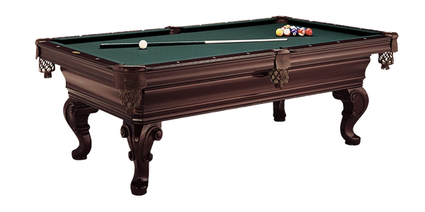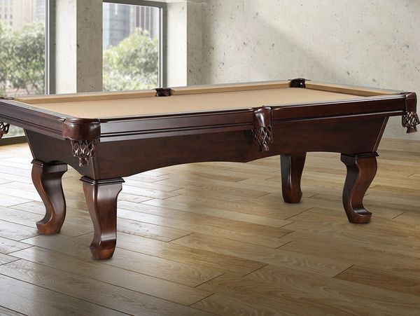 Available in 7' or 8', brand new. 1" slate, Traditional Mahogany, legs, and rails. Drop pockets. Sale includes new cloth in any color, 4 cues, bridge, ball set, and installation. 1 week order.