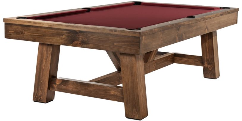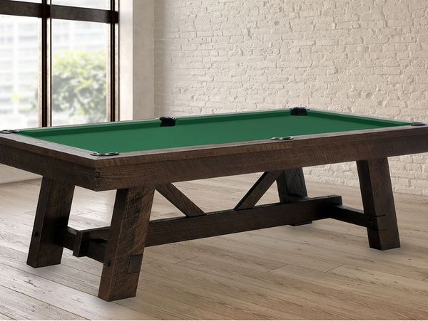 New, The Timber Ridge pool table is made from Solid Pine and features rustic characteristics of Rough-Sawn Pawn. The rail and apron are made with reclaimed wood from old barns and out buildings sourced from the North East United States. Sale includes new cloth in any color, balls, cues, bridge, delivery and installation. Made in the U.S.A. 3-4 week order.