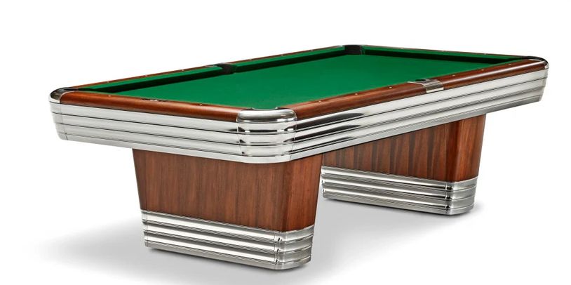 Brand new, in factory boxes, 2024 model year...a reissue of the iconic Deskey design. 9' Brunswick Centennial with ball return. Rosewood rails with polished aluminum blinds, 1" slate, and lots of details, just like the original! The sale includes, cloth, balls, cues, bridge, racks, and local installation. $14,900. In stock.